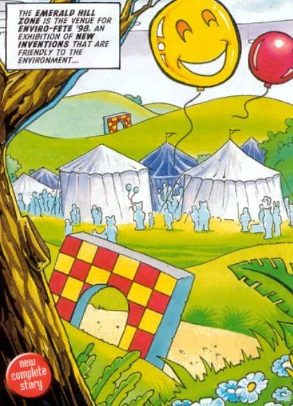 Enviro Fete '98 is the 1998 edition of "Enviro-Fete", an exhibition that seeks to discover inventions that are friendly to the environment. This year, the festival was held in the Emerald Hill Zone.