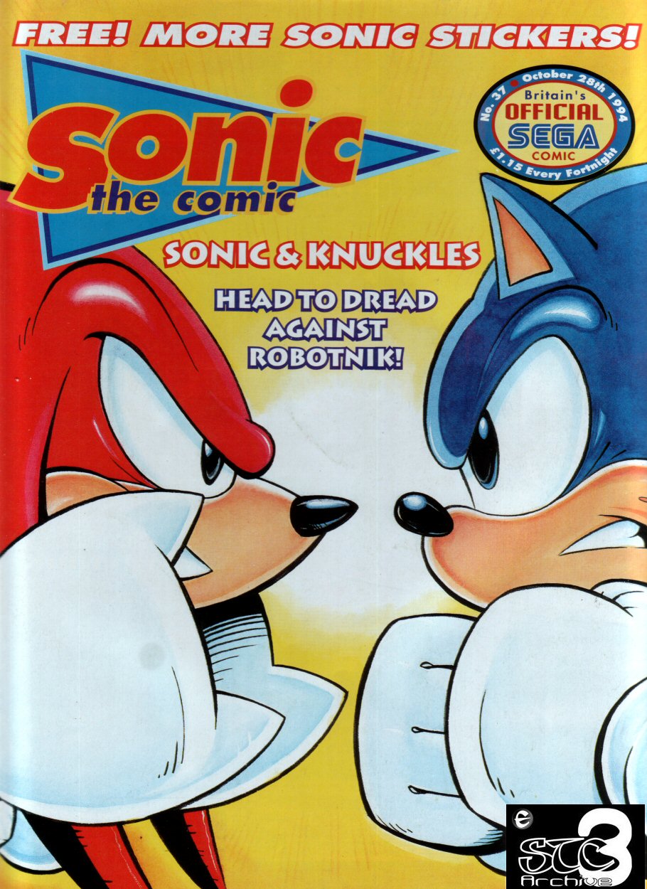 Issue 37 is the thirty-seventh edition of Sonic the Comic. Released on the 15th October 1994 at the price of £1.15, the issue contains four original strips, several features and a free gift of a set of Sonic the Stickers.