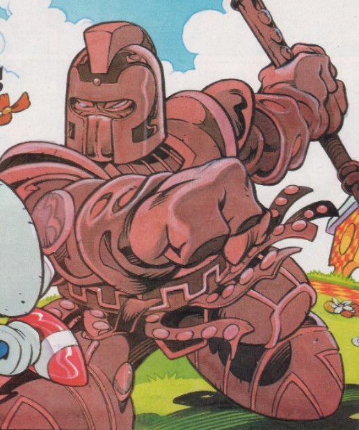 Master Sentinels are giant versions of the modern Drakon soldiers. They do not carry weaponry, using their sheer size and strength to lay waste to their enemies. In the three-part story Best of Enemies, the Drakons arrived on Mobius in order to capture Sonic and sent a squad of Sentinels to the Emerald Hill Zone. Sonic easily dispatched the Drakon soldiers, but the Prosecutor commanding them summoned a giant Master Sentinel to finish the job. This Sentinel failed as well since Sonic damaged its chest armour and exposed its wiring. Tails flew Sonic into the hole and Sonic proceeded to rip the Master Sentinel apart from the inside.