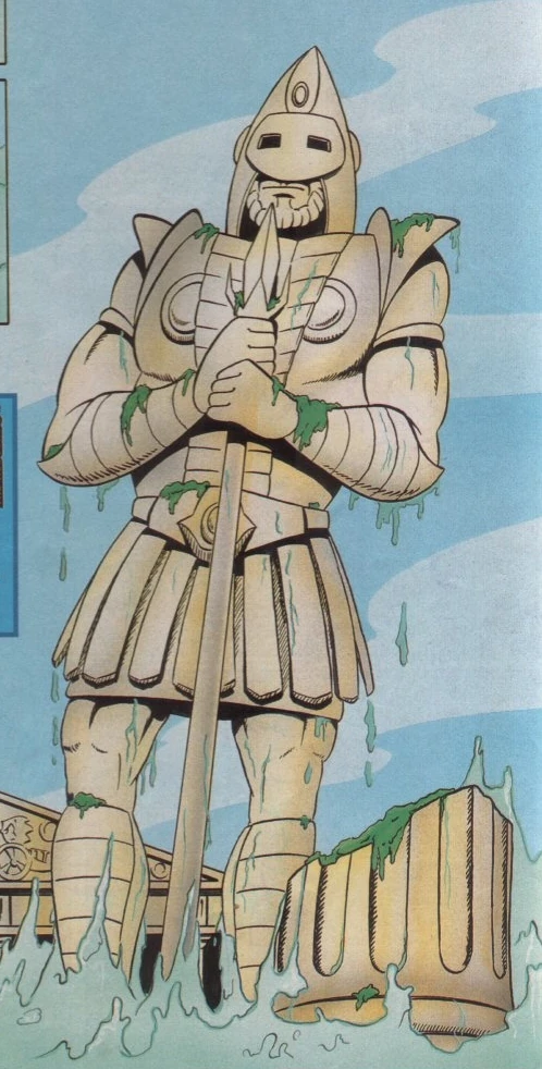 Sonic The Hedgehog first encountered a Drakon Sentinel in the Aquatic Ruin Zone, years before his first encounter with the Drakon Empire. Unlike the Sentinels that Sonic would later encounter, this one was gigantic and made of stone, possibly created via magical means. At first, Sonic believed that the giant was a new type of Badnik, but soon discovered the truth after the giant saved him from drowning. The Sentinel explained that he was created by 'the ancient ones' and had been guarding their city for two thousand years. But as the city began to sink, they evacuated the planet and left the Sentinel behind. Realising that its work was completed, the Sentinel self-destructed and