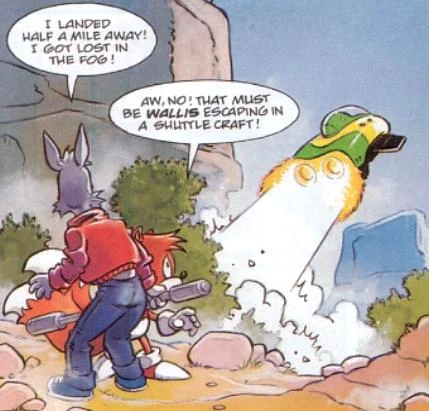 The Sun Valley Zone is a Zone on Mobius. The mountainous region got its name because the weather is always sunny there. However, this notion was challenged when a thick, unnatural fog spread throughout the Zone. As requested by Johnny Lightfoot (actually Shayde), Tails visited the area in his biplane, but crash-landed because he couldn't see the cliffs in the fog. He eventually discovered that the fog was caused by Windy Wallis, who was in league with Agent X. Tails destroyed the weather machine with Johnny's staff but was unable to stop the two villains.